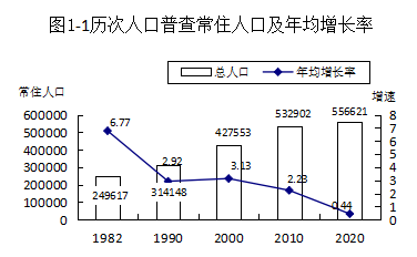 全市常住人口与2010年第六次全国人口普查的532902人相比,增加了23719人,增长4.45%,年平均增长率为0.44%。
