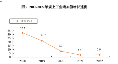 全年规模以上工业增加值比上年增长2.9%。分经济类型看,国有控股企业增加值增长5.7%,股份制企业增加值增长2.8%,外商及港澳台商投资企业增加值增长18.7%。分门类看,采矿业增加值增长3.6%,制造业增加值增长3.3%,电力、热力、燃气及水生产和供应业增加值下降3.0%。分行业看,煤炭开采和洗选业增加值增长3.4%,石油、煤炭及其他燃料加工业增加值增长4.2%,化学原料和化学制品制造业增加值下降0.5%,黑色金属冶炼和压延加工业增加值增长9.6%,计算机、通信和其他电子设备制造业增加值增长51.5%,电力、热力生产和供应业增加值下降3.0%。